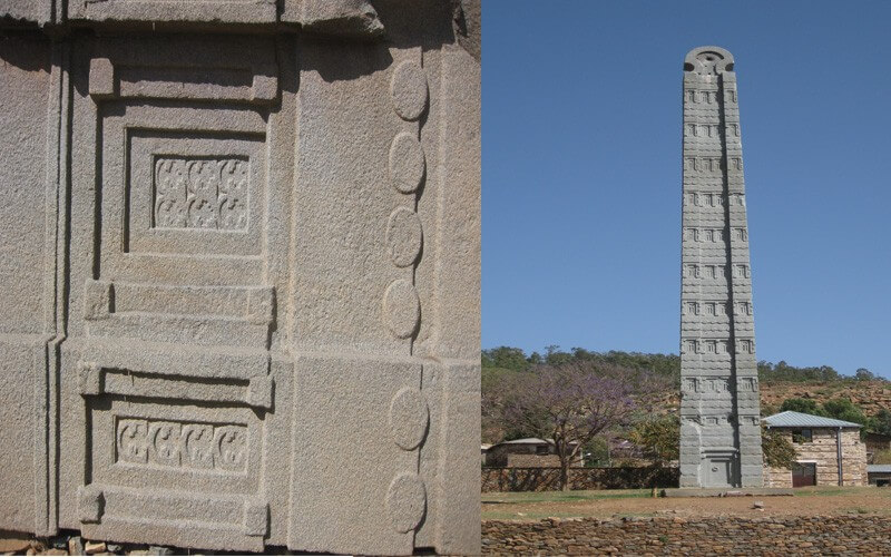 A UNESCO World Heritage Site, the Axum Obelisks in northern Ethiopia are towering granite stelae from the 3rd–4th centuries, marking royal tombs of the Axumite Kingdom. The 24-meter Obelisk of Axum, returned from Italy in 2005, and the fallen Great Stele showcase intricate carvings and engineering prowess. Nearby, the Church of St. Mary of Zion, believed to house the Ark of the Covenant, marks Ethiopia’s early adoption of Christianity in the 4th century. The site’s historical significance as a trade and cultural hub is further highlighted by King Ezana’s Inscription, a multilingual stone tablet.